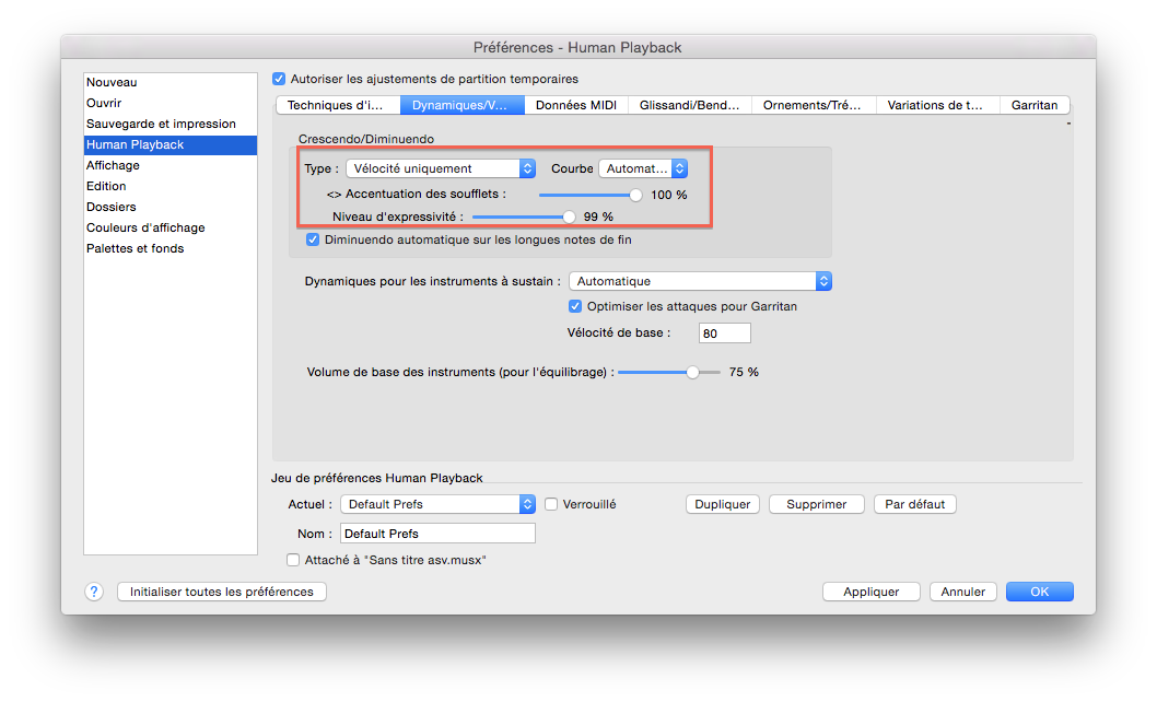 A l'audio, les crescendo/decrescendo sont gérés par Human Playback, lequel doit donc être activé, comme vous le conseille HALDOM