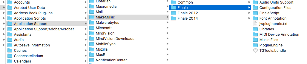 je ne trouve pas le dossier Plug-ins. J'ai bien suivi le chemin : Bibliothèque > Application Support > MakeMusic > Finale