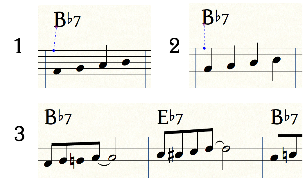 L'image 1 montre le placement par défaut. L'image 2 montre le placement que je voudrais avoir par défaut. L'image 3 montre comment le placement par défaut n'est pas horrible, mais pas vraiment bien non plus : l'accord est décentré par rapport à la tête de note :(