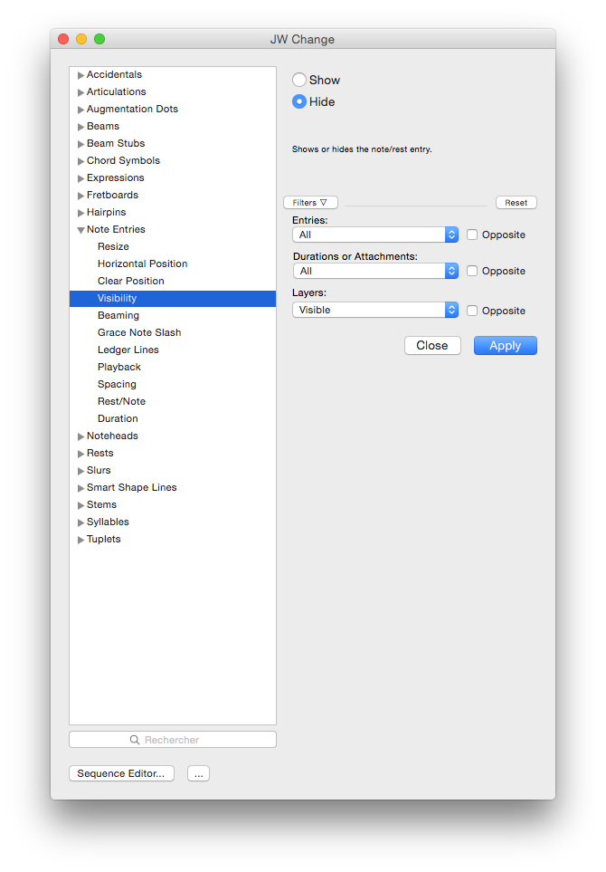 Autre possibilité : le plug In JW Change, qui permet également de masquer des notes