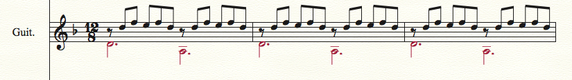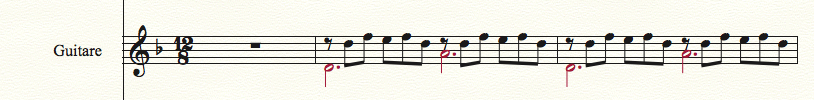 Petit détail qui a peut être son importance : après avoir saisie la partie de guitare sur deux couches, mélodie + accompagnement, j'ai ensuite saisie des accords dans la même portée guitare par erreur en couche 2 que j'ai ensuite convertie en couche 1.