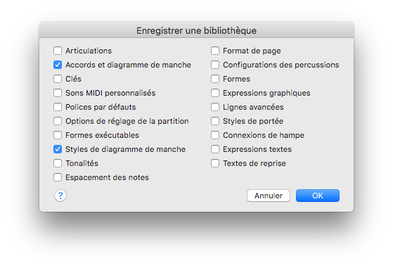 Peut-être as-tu confondu la sauvegarde des diagrammes (Save Library ► Chords & Fretboards) avec la sauvegarde des styles de diagramme (Save Library ► Fretboard Styles).