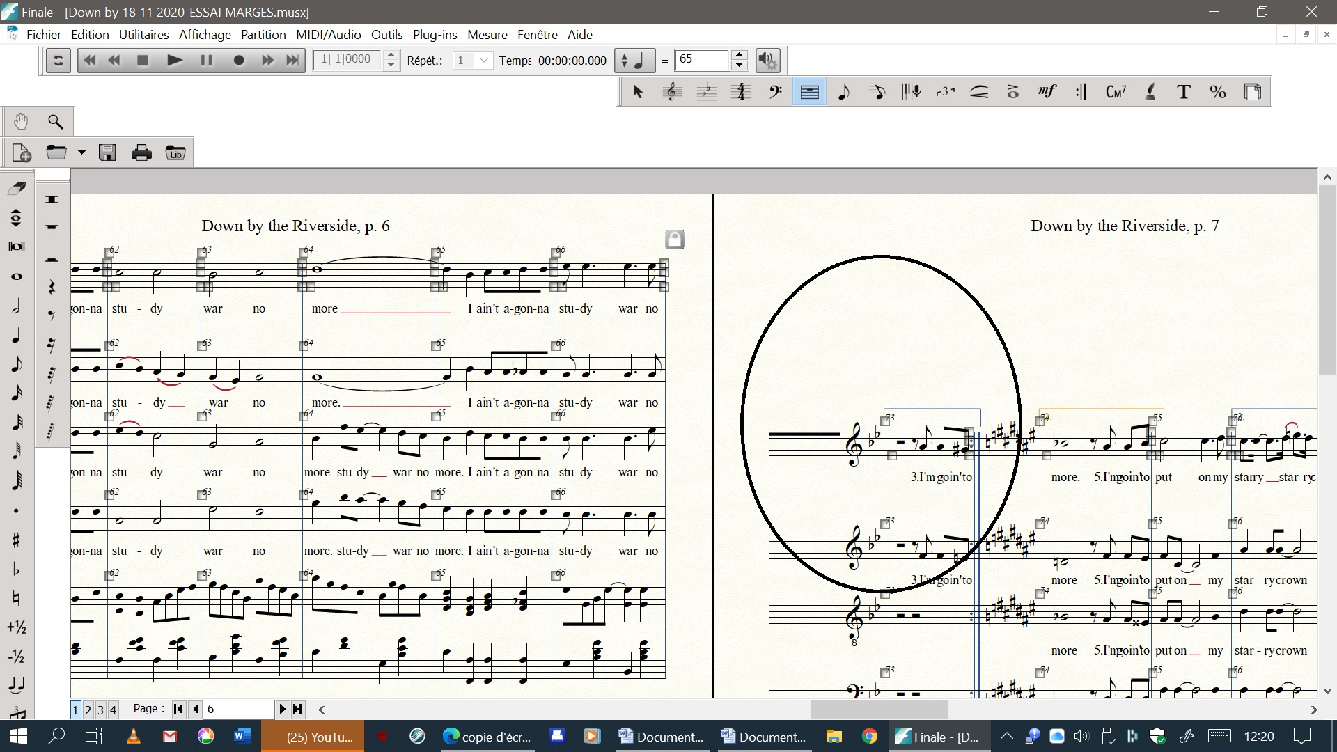 Dans le fichier joint : partition en cours d'élaboration avec Finale 26 je n'arrive pas à supprimer une marge, ou plutôt un décalage qui est présent à partir de la page 7 et jusqu'à la page 9. Il y aussi une petite barre que je peux saisir mais je ne comprends pas comment l'enlever.
