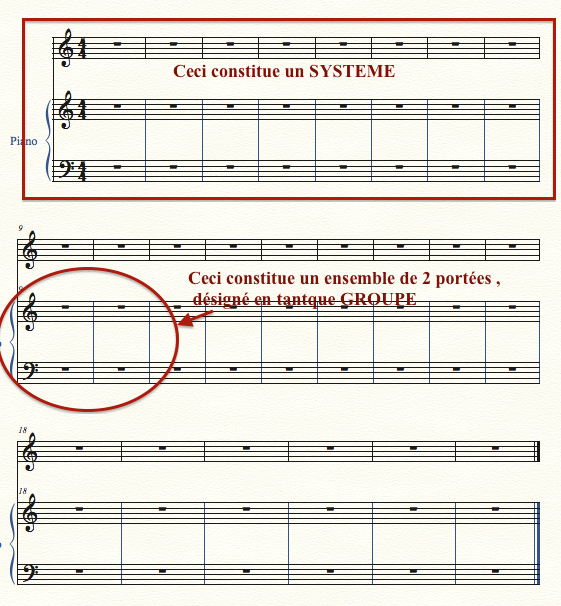 SYSTEME : ensemble de tous les instruments constituant une "ligne" de portées