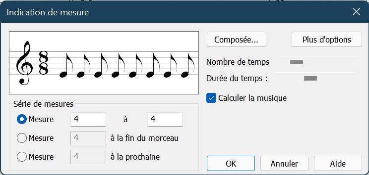 Je ne rencontre pas le dysfonctionnement que vous évoquez en terme de modification de l'indication de mesure,Sabinus a écrit :Dans une partition comportant plusieurs changements d'indications de mesures, modifier une ou plusieurs mesures provoque systématiquement le changement de TOUTES les mesures situées après la ou les mesures à modifier, jusqu'a la fin de la partition.