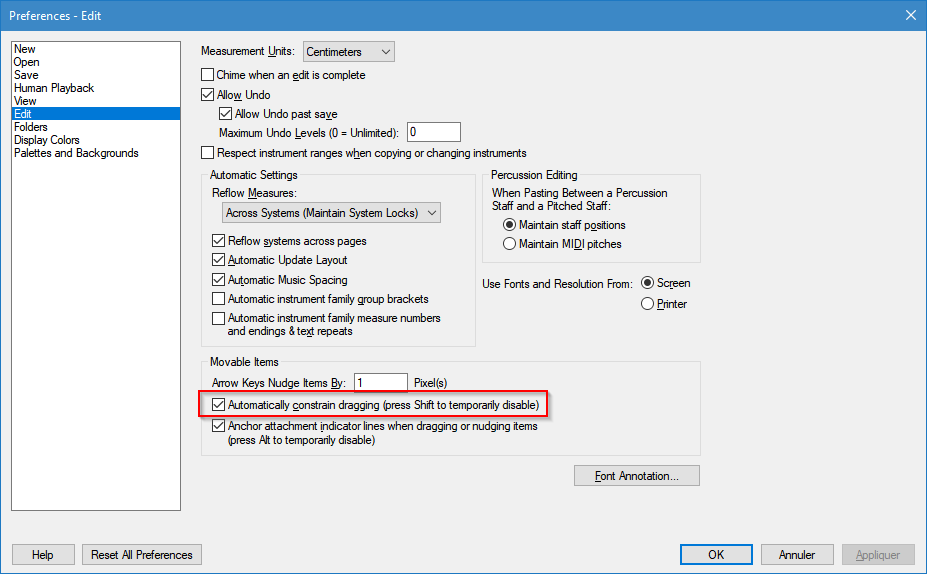J'ai coché les 2 cases dans les Préférences comme indiqué sur votre copie écran, mais si je clique sans appuyer sur Shift le glissando ne se fixe pas verticalement, il est libre et si je maintien Shift appuyé, le glissando se met en travers? voyez sur la copie écran jointe ce qu'il se passe ? est-ce le fait que je suis sur PC ?