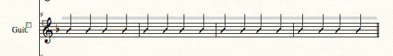 Je sélectionne une région partielle de mesure contenant les temps 2, 3, 4 de chaque mesure, et dans l'outil portée, j'applique le style Notation rythmique (touche R). Je renouvelle l'opération dans chacune des 4 mesures.