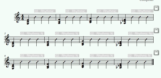 Je crée par ex. 4 mesures avec 4 accords identiques dans chaque mesure.