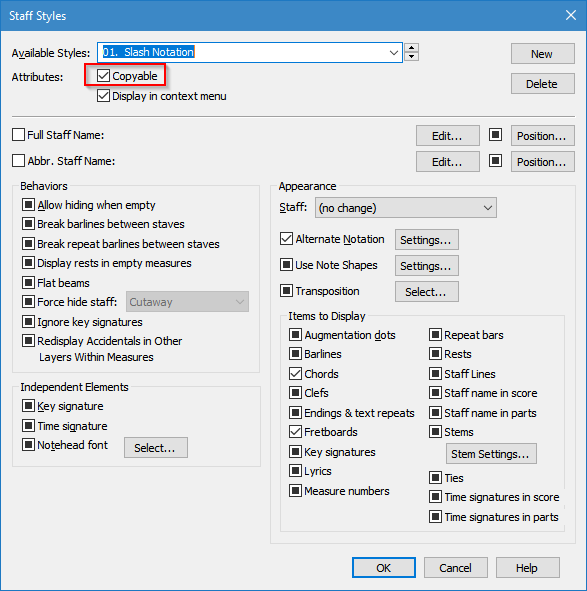 Plusieurs mesures utilisent les mêmes accords répétés mais je n'arrive pas à copier coller (cliquer glisser) le modèle. Je suis obligé de sélectionner dans chaque mesure et de refaire tout le processus. J'ai pourtant cliquer la case "copiable" dans le menu notation alternative.