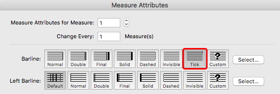 Si (et seulement si !) le trait doit s'appliquer à toutes les portées, il y a aussi une barre de mesure très réduite, "Tick" en anglais.
