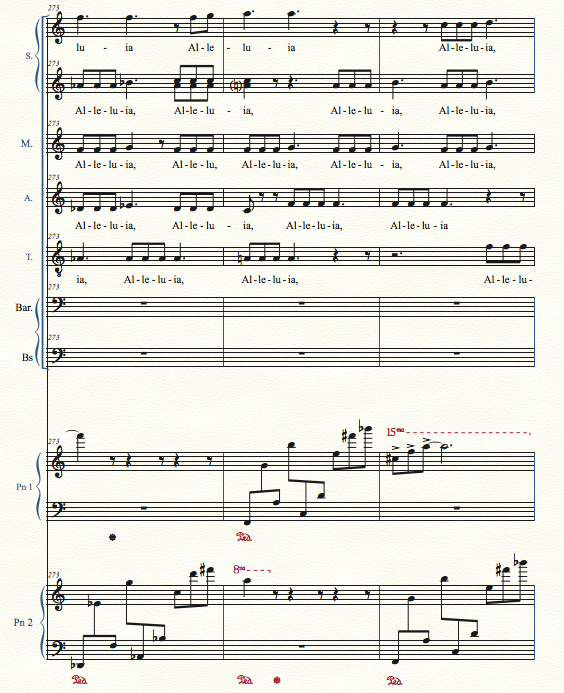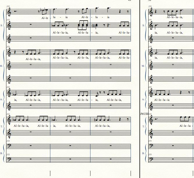 La partie des choeurs n'est pas identique au conducteur. Avez-vous masqué des portées dans le conducteur, car il y en plus dans la partie des choeurs ?