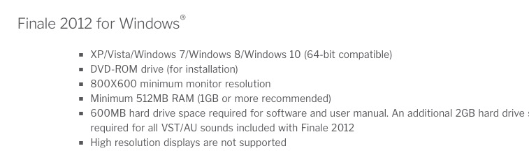 D'après le site de MakeMusic, Finale 2012 est compatible avec Windows 10 :