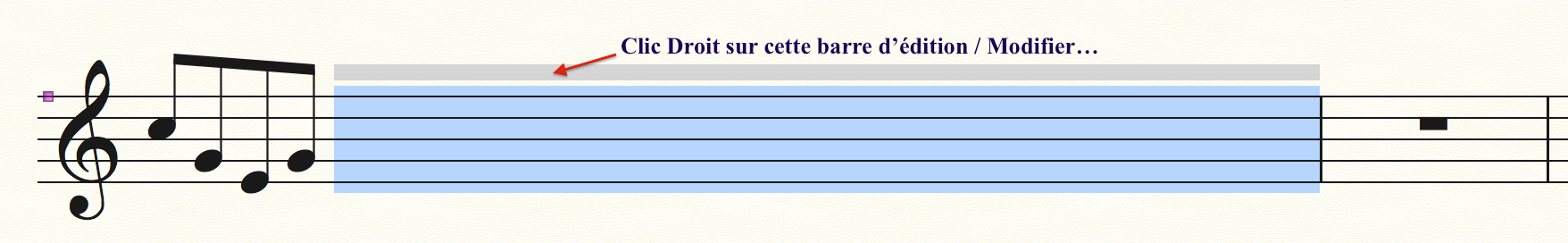 - Déposer TOUTES les notes (groupes de notes) dans la portée : cette précaution permettra la lecture audio