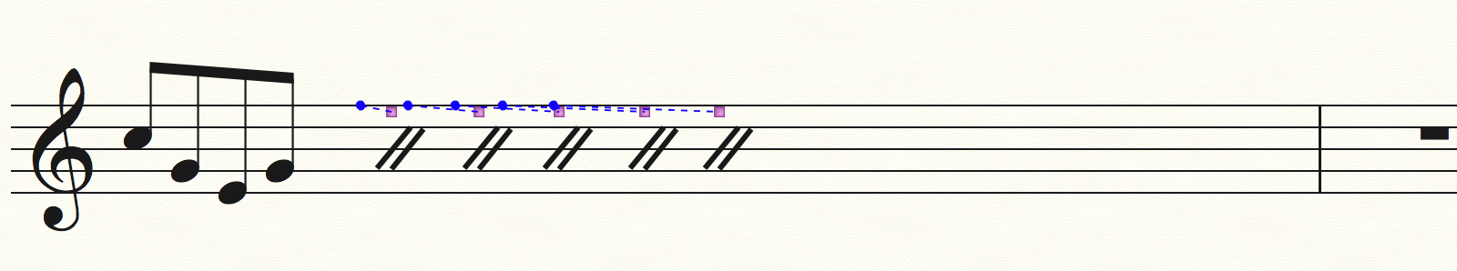 Il y a beaucoup d'explications partout comment indiquer la répétition d'une mesure, mais je n'arrive pas à retrouver comment indiquer la répétition d'un fragment dans la même mesure :