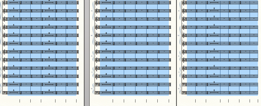j'ai créé une partie de chœur qui comporte diverses indications de mesure (3/4..4/4.. etc...). Comment faire pour créer une seule grande pause, afin de gagner de la place sur la partition ? Je pourrais bien sûr convertir toutes les mesures vides à 4/4 par exemple, cela marcherait, mais se ferait aussi sur le conducteur.
