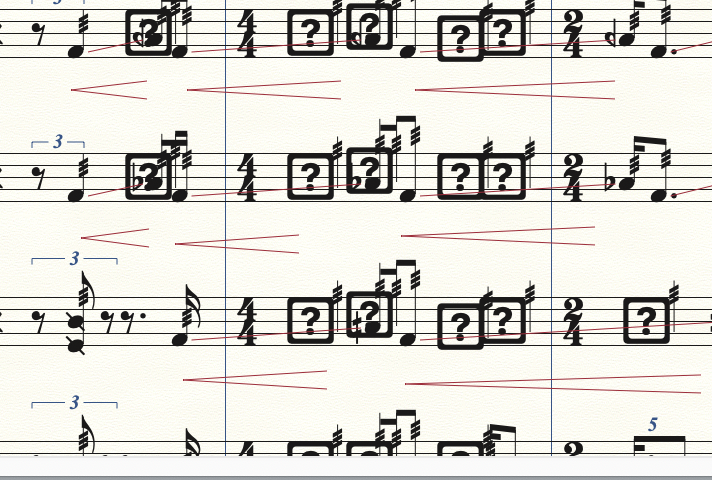 2- Peut-être est-ce lié à la 1ère question mais lorsque j'ouvre un fichier de Finale 2011, de nombreuses tête de notes apparaissent comme des points d'interrogations. Même lorsque je choisis une police équivalente aux deux ( maestro )