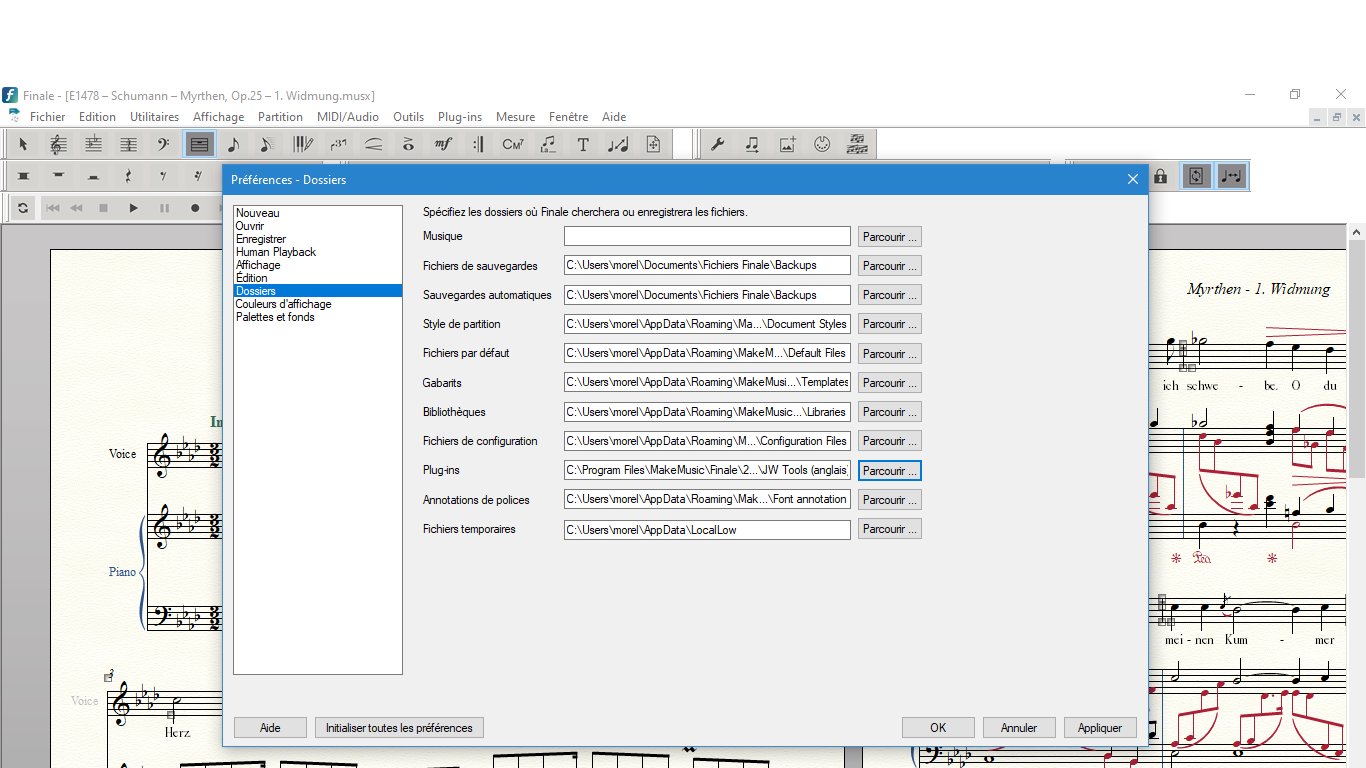 Merci, mais c'était une demande adressée à Lolotte, qui rencontre le problème. Votre "chemin" pour les plug-ins indique Program Files et non Programmes, normal (vous avez Finale en anglais) ?