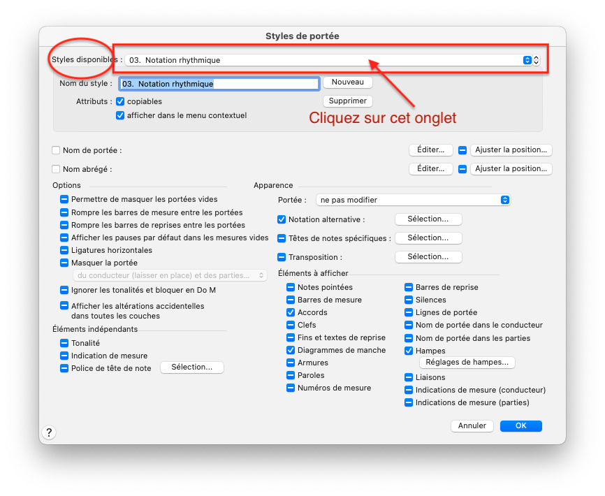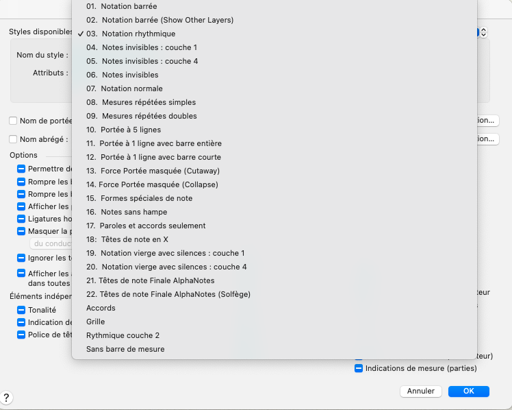 Je ne comprends pas? lorsque je clique sur sur l'onglet, dans la fenêtreStyles de portée comme vous l'avez indiqué, mais 03.Notation rythmique n'est pas présent? savez-vous pourquoi? peut-être que le fichier est bugguer? car j'ai essayé sur sur un document par defaut ça fonctionne?
