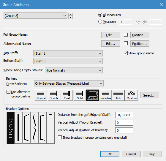 Il y aurait peut-être une autre solution, ce serait de créer 2 groupes. Le premier engloberait les 2 premières portées, le deuxième, les 3 premières. Ils seraient définis comme suit :