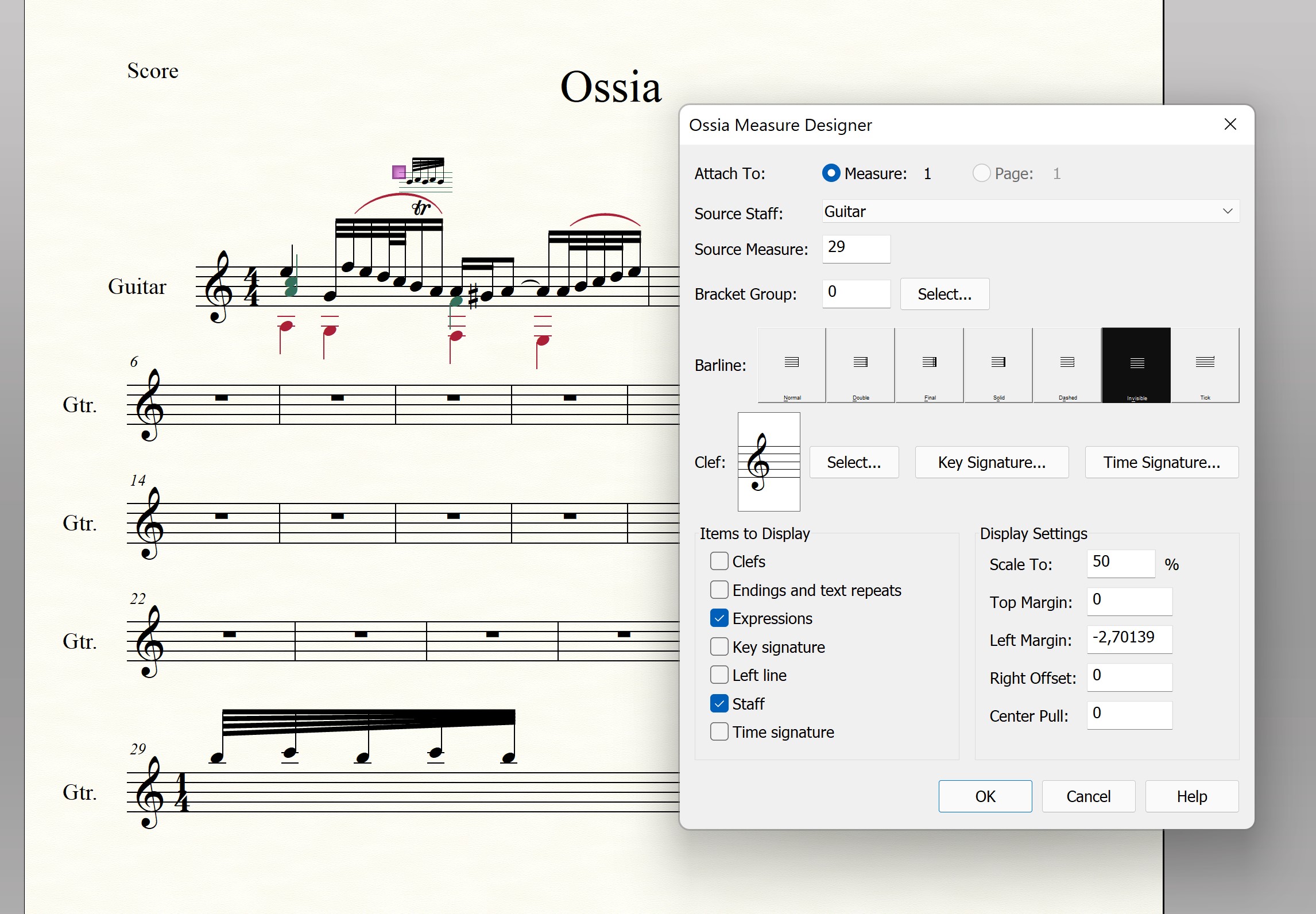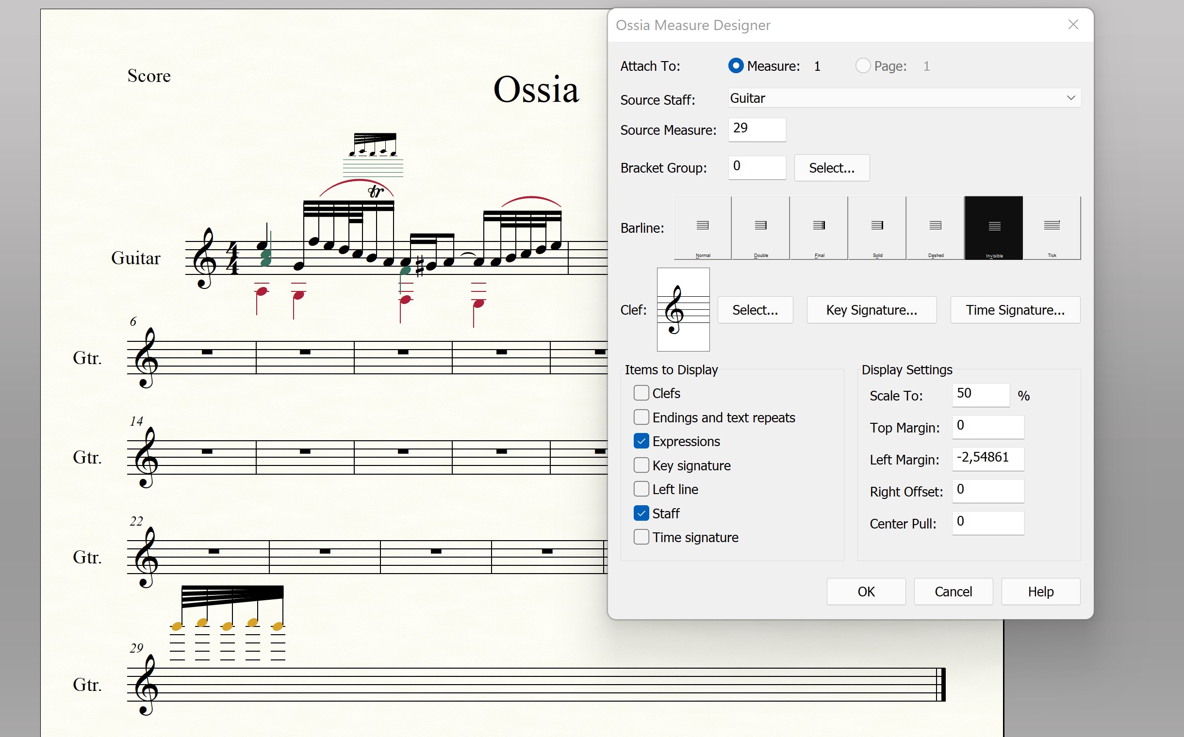 depuis plusieurs heures, j'essaie de faire une mesure Ossia comme celle de l'image ci-dessous. J'arrive à créer cette sorte de mesure, mais, Finale m'affiche tout ce qu'il se trouve dans la mesure entière.