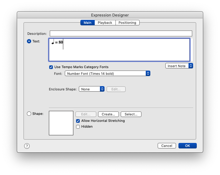 Et je ne sais pas comment faire pour indiquer un tempo en débute de pièce, en Expression (tempo marks).