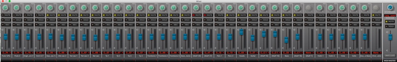 Inscrivant pour orchestre symphonique où figurent plus de 24 parties instrumentales, je vérifie avec le tableau de la table de mixage. Cependant cette table de mixage n'affiche en même temps que 16 instruments et l'on doit actionner les signets de gauche ou de droite pour retrouver les autres instruments non visibles. Existe-t-il une possibilité d'avoir la vue de la table de mixage dans son entier, par exemple avec l'affichage des 24 ou 25 parties d'un seul tenant, en une seule image ?