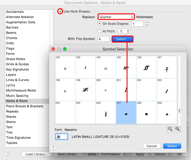 Le caractère de la tête de note des noires et des croches a changé dans les options du document. Il faut le remettre sur le caractère 207.