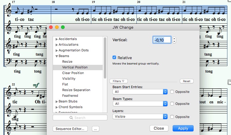 Sinon allez voir la section "beams" des options du document et comparez-la avec celle d'un document correct (faites notamment attention au "Beaming style").