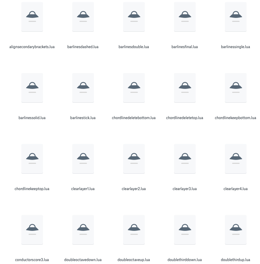 Nick Mazuk, qui anime entre autres une chaîne Youtube (Finale Superuser ICI), chaîne qui offre de nombreuses vidéos pédagogiques concernant Finale (en anglais), met à disposition de nombreux scripts JW Lua scripts gratuitement. Il est probable qu'ils sont destinés à Finale anglais, mais à tester en français.