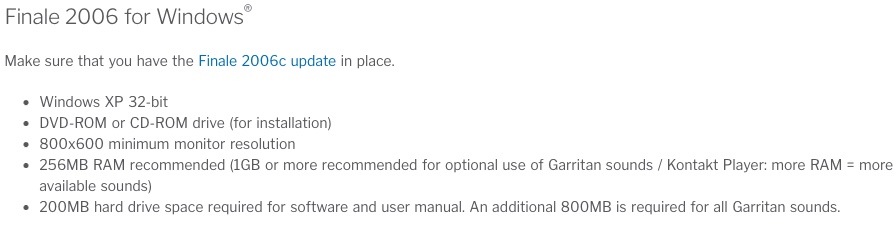 Par ailleurs, si vous avez toujours Finale 2006, MakeMusic ne garantit pas la compatibilité avec Windows 10 (les infos de votre profil). Voir image.