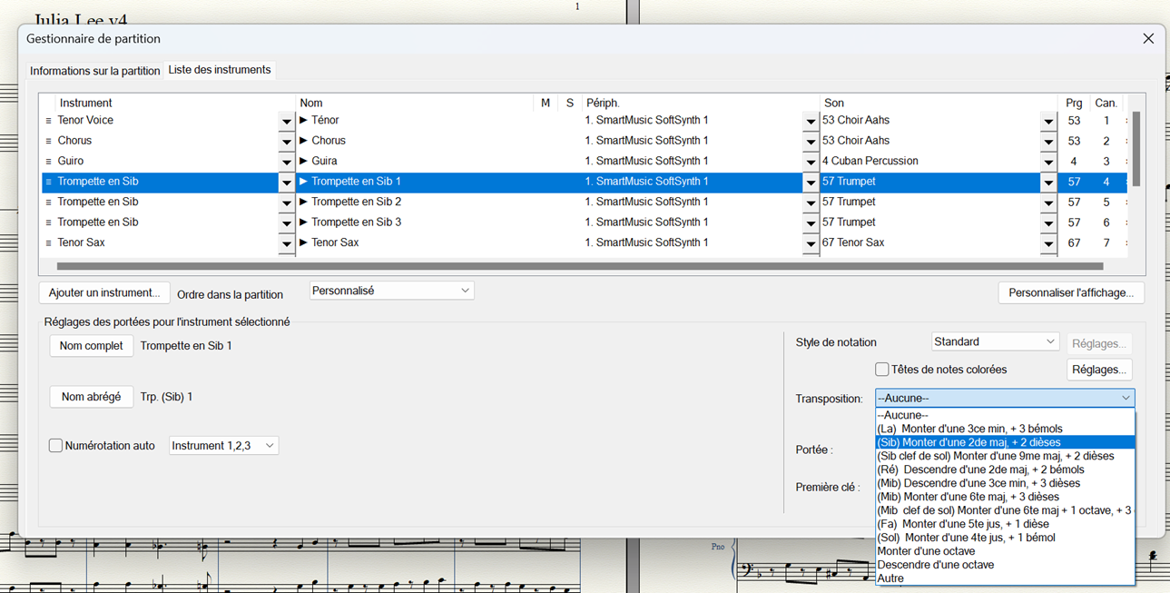 permettant ainsi l'activation des instruments transpositeurs