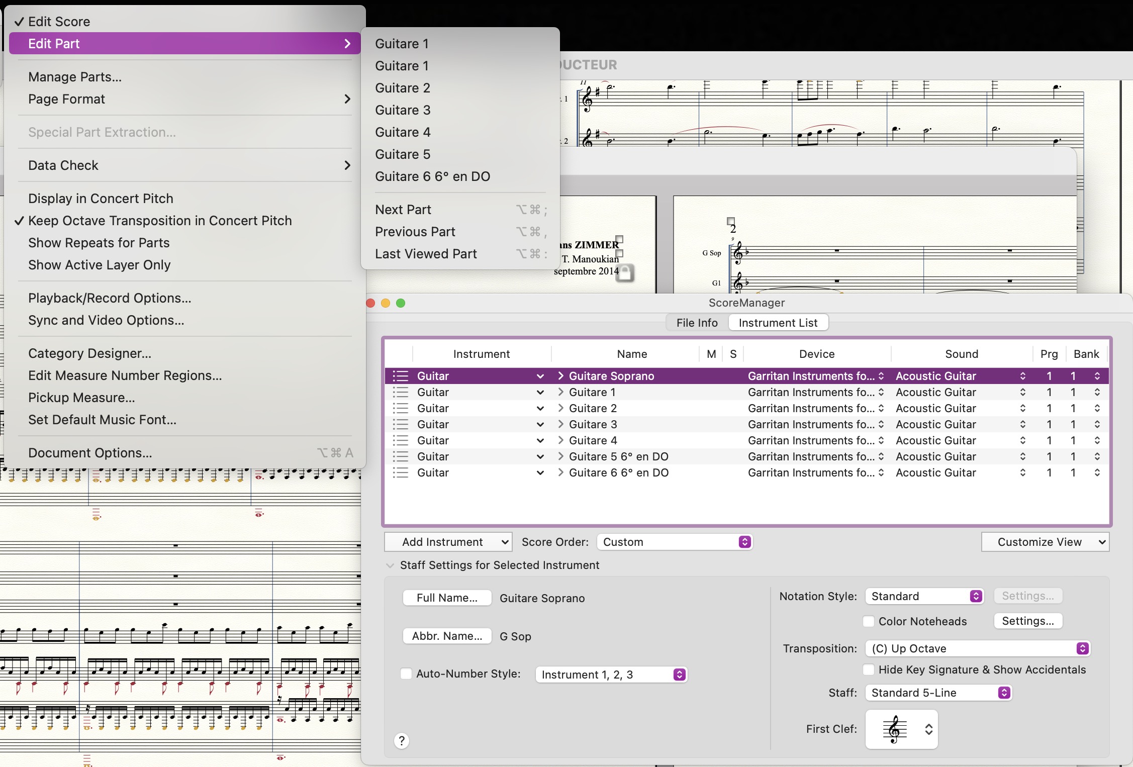 par ailleurs le nom que j'ai donné dans le score manager (par ex guitare soprano) n'est pas modifié dans document > Edit part