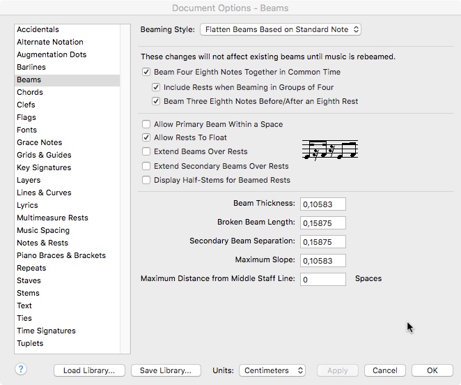 Notez que la case "Beam Four Eight Notes Together" concerne les croches groupées par 4.
