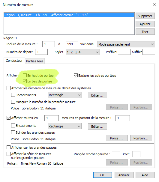 Au lieu d'Afficher "En haut de portée" et "En bas de portée", il faut lire Afficher "Sur la portée du haut" et "Sur la portée du bas", ce qui est fort différent.