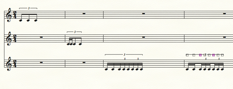 Placer un trlolet sur chacune de deux autres croches avec l'outil "Triolet",