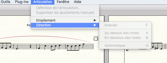 - Outil Articulation : des petits "carrés" ( = "poignées') apparaissent au dessus ou en dessous des têtes de notes ou des hampes