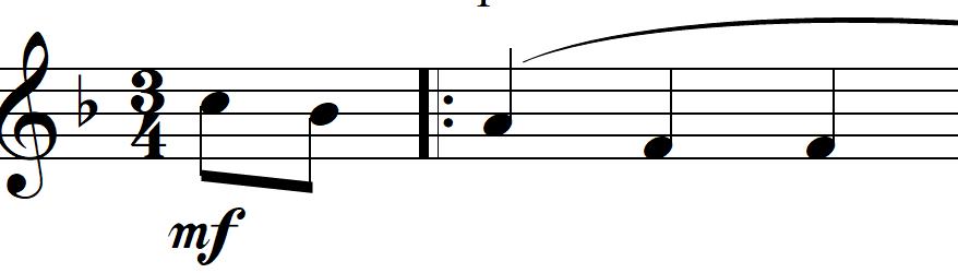 La situation : deux croches en anacrouses précèdent une barre de reprise ouverte : je peux mettre un legato sur les deux notes, mais celui-ci disparaît aussitôt quoique je fasse. Donc sur le graphique, les deux notes ne sont pas liées alors que je veux qu'elles le soient.