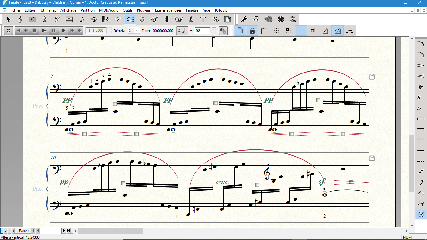 Si j'utilise l'outil Angle de ligature secondaire, j'arrive à déplacer les ligatures secondaires au dessus mais je n'arrive pas à raccourcir les hampes centrales...