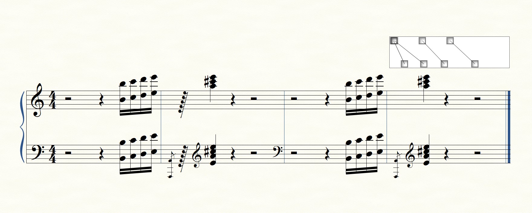 Il faudra pour finir réduire les têtes de notes (outils spéciaux), et ajouter la petite barre.