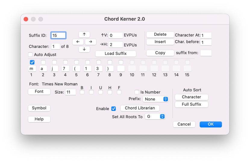 "v2.4 is the final release of Chord Kerner. It includes some new resizing options and allows (some) SMuFL characters in the CK window. Please note, there will not be new instructions created for these new features. Also note – The Resize Complete Library checkbox has not been implemented, but will show in the window."
