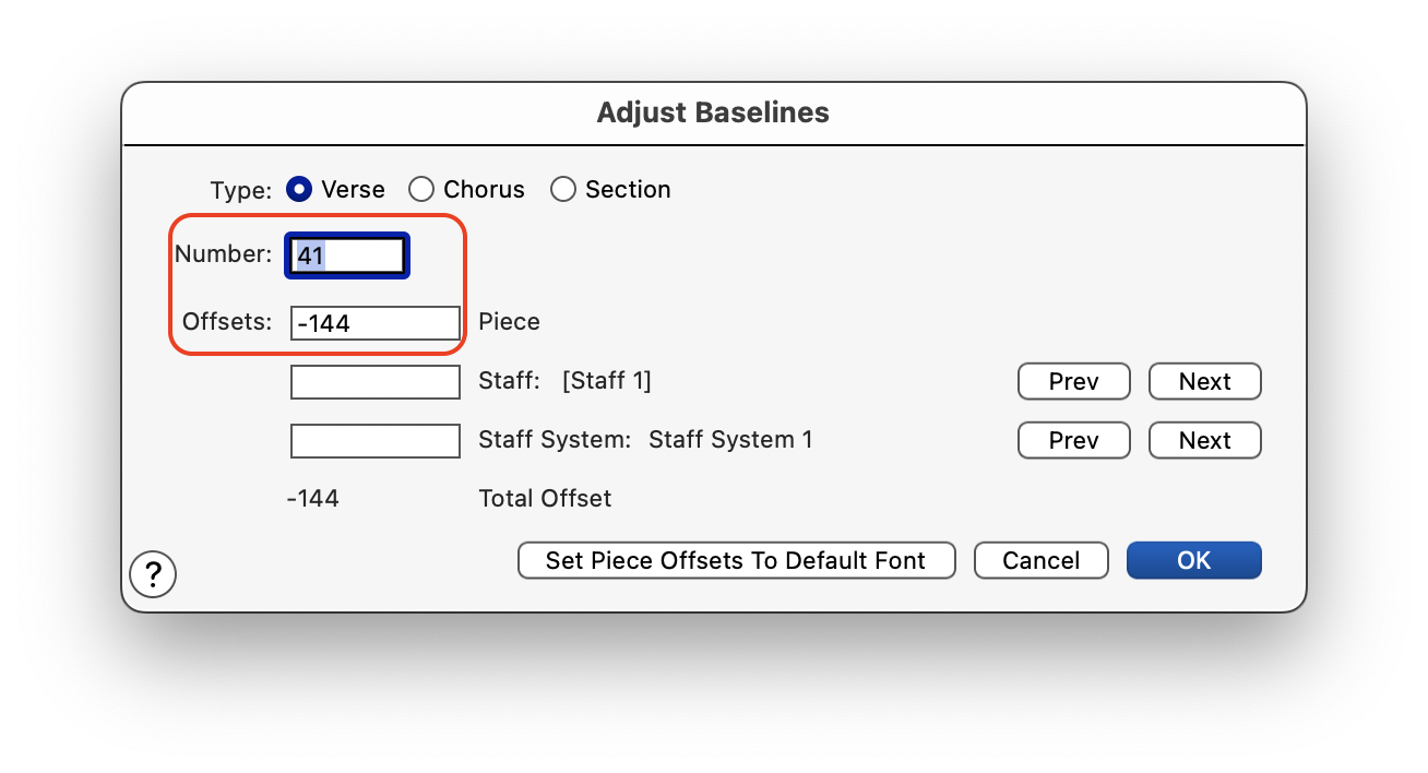 Menu Lyrics > Adjust Baselines... > inscrire le même nombre que couplet 1 à "Offsets"