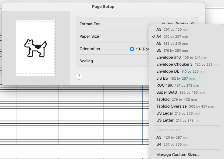 Je ne suis pas expert en matière de taille de papier, mais dans Finale, vous pouvez choisir avant impression (et obtenir un pdf) parmi de nombreux formats. C'est dans le menu Fichier. Vous pouvez même en créer un nouveau.